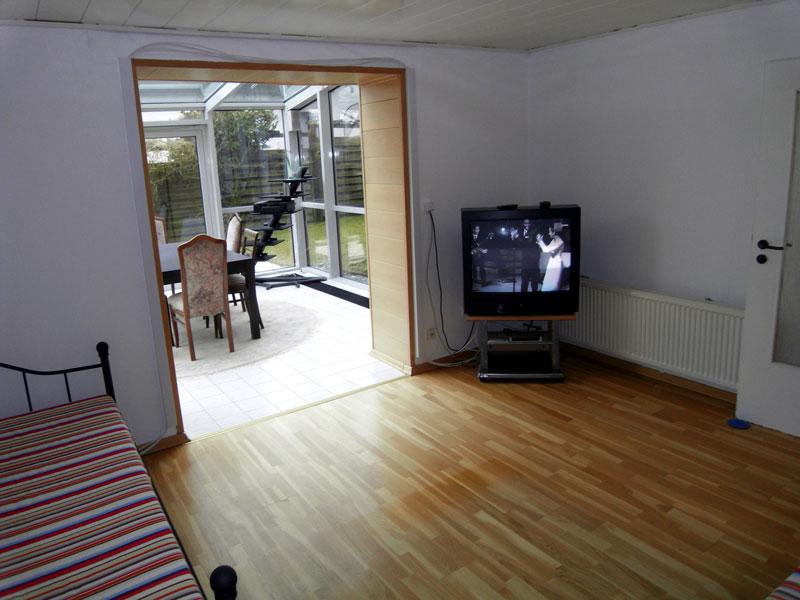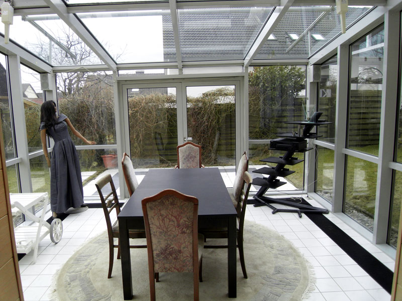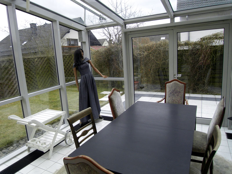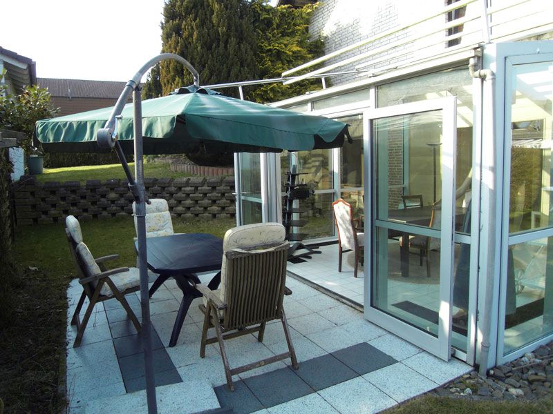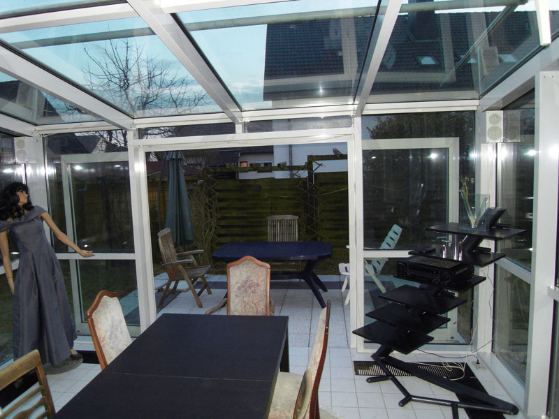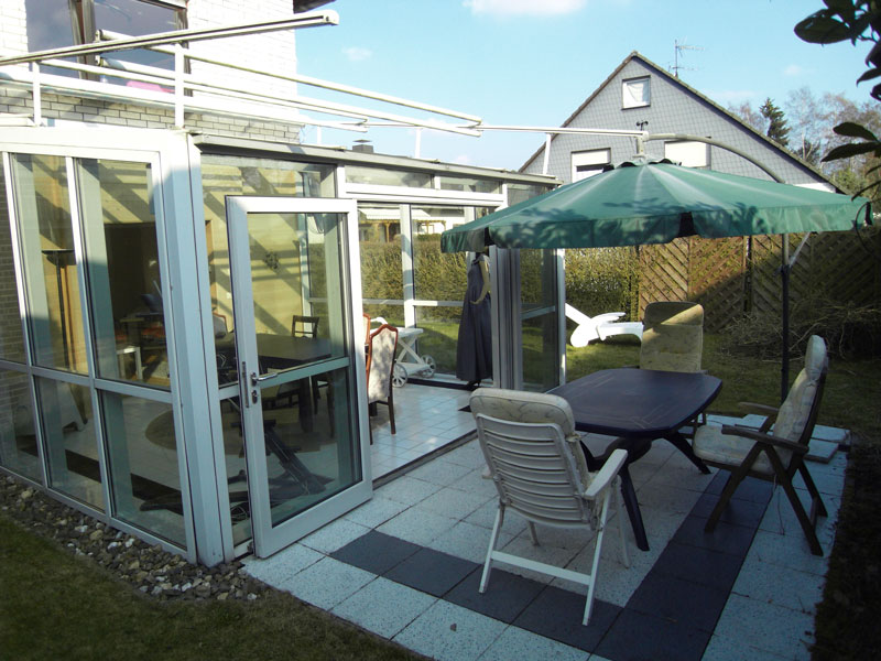 Wintergarten (im Sommer mit Gartenmöbeln vor der großen Tür)